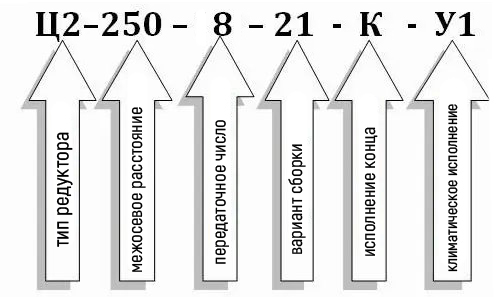 Пример условного обозначения редуктора Ц2-250-8 при заказе: