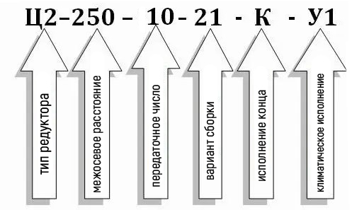 Пример условного обозначения редуктора Ц2-250-10 при заказе: