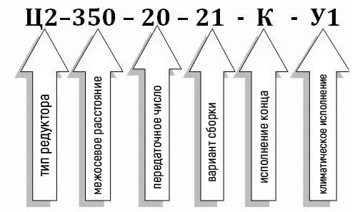 Пример условного обозначения редуктора Ц2-350-20 при заказе: