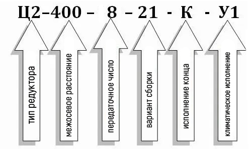 Пример условного обозначения редуктора Ц2-400-8 при заказе: