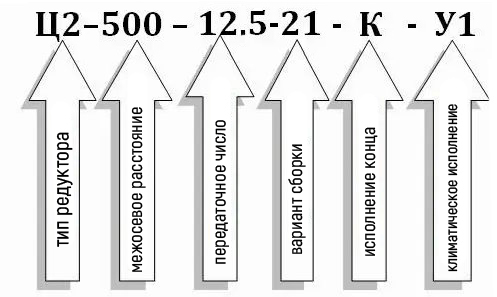 Приклад умовного позначення редуктора Ц2-500-12.5 при замовленні: