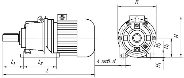Габаритні та приєднувальні розміри мотор-редукторів 3МП-40 (виконання – на лапах)
